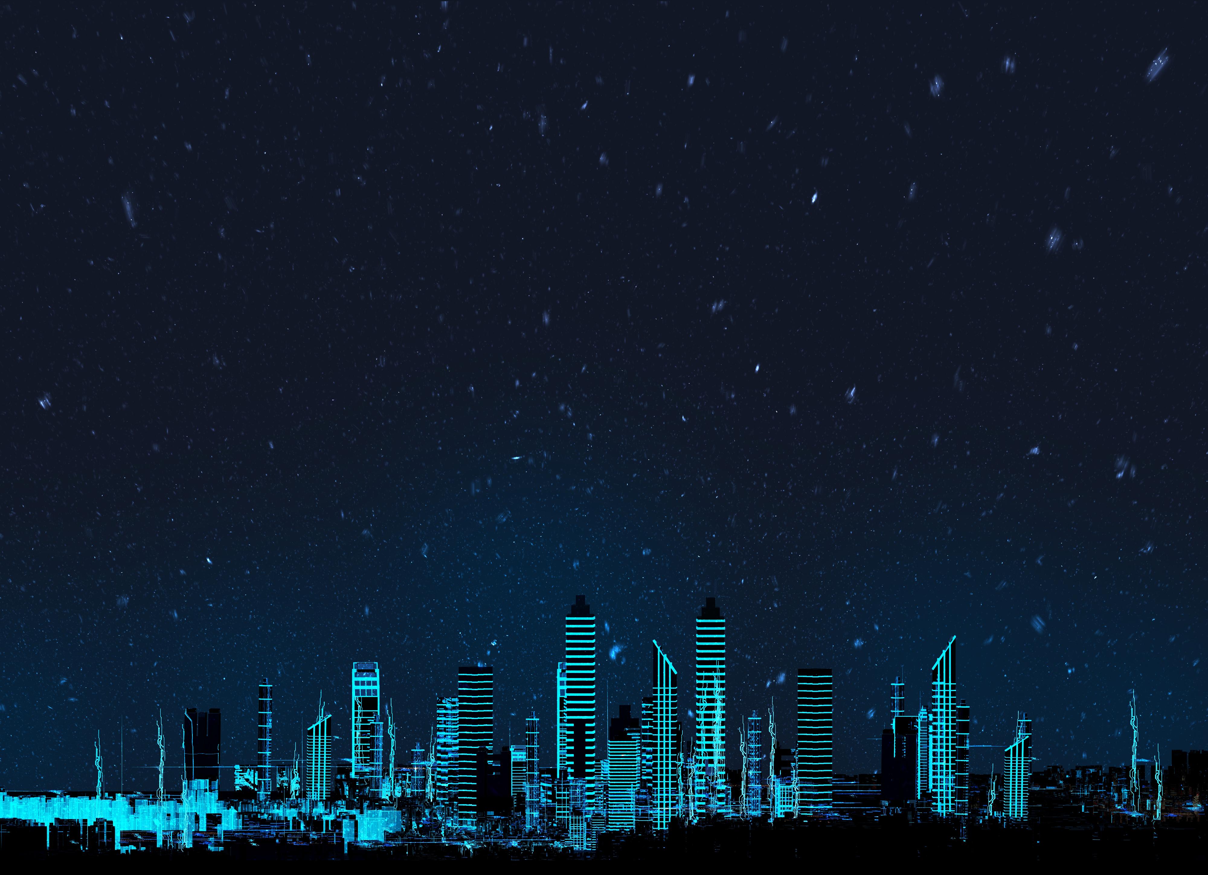 이곳은 도시 외곽, 아득하게 휘몰아치는 검은 눈보라 너머로 야경이 빛나고 있습니다.