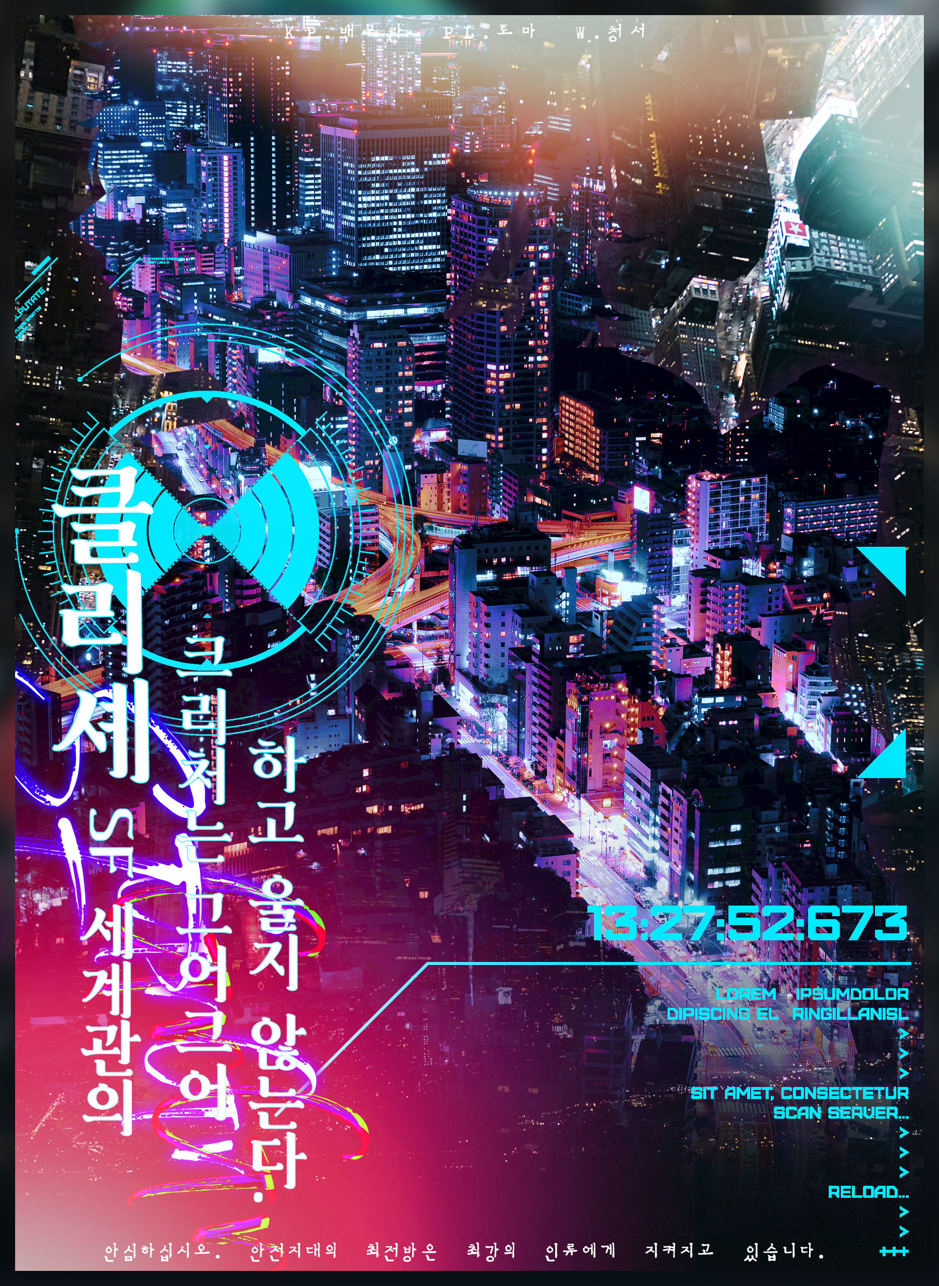아득하게 휘몰아치는 검은 눈보라 너머로 야경이 빛나고 있습니다.