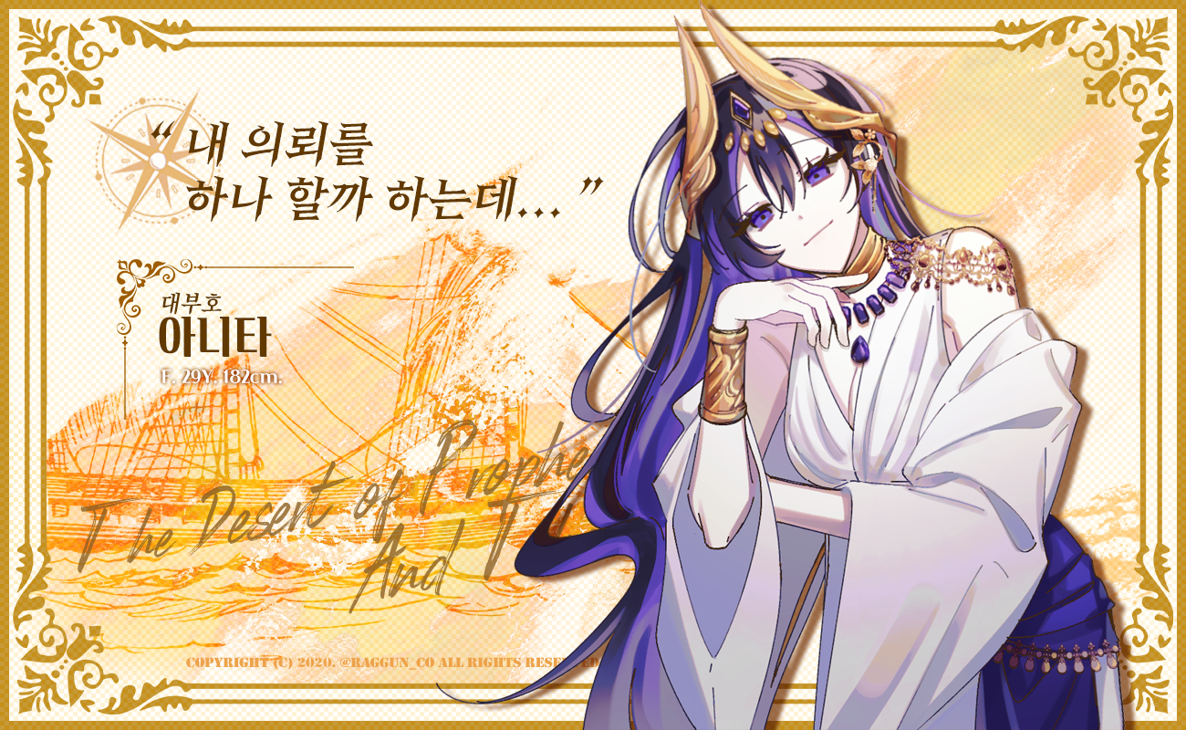 ... 나, 아니타. 이 작열하는 태양 아래 두 손 모아 간절히 바라옵건대... (뱃머리로 향하지 않는다. 조종대를 잡지 않는다. 그저 소리 내어 말하며 천천히 두 손을 모아 제자리에 꿇어앉는다. 차분히 내리 감은 두 눈은 온전히 나의 태양만을 향한다)