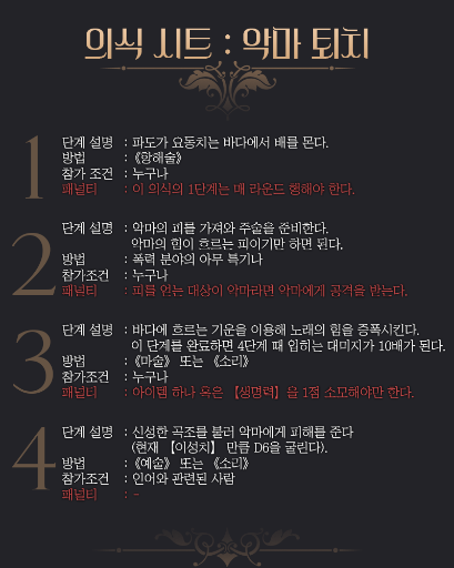 샤디아 누아슈넬:.....(잠잠해진 바다를 살핀다. 물러난 악마의 흔적이라도 보일까 눈빛이 고요하게 움직인다. 끊임없이 노래하는 바다의 소리에 귀가 먹먹하게 울리다가 눈을 꾹 감았다 뜨면) .... ... ...그저 이 바다를 지키기 위해 행한 일이지.