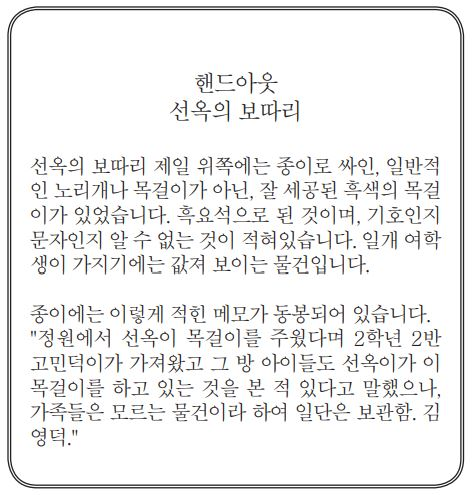 시나리오 원본 링크 : https://mika1002.tistory.com/29
