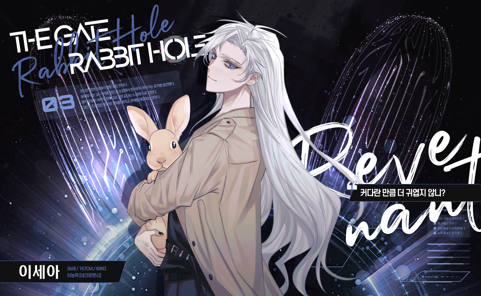 이세아:좀 충격을 받긴 했지만 금방 회복해요... 며칠 쉬었다가 길드에서 일 주면 다시 헌터 일 하면서 평소처럼 지냈을 것 같습니다. 그리고 한동안 토끼 관련된 건... 잘 안 보려고 할 것 같아요..