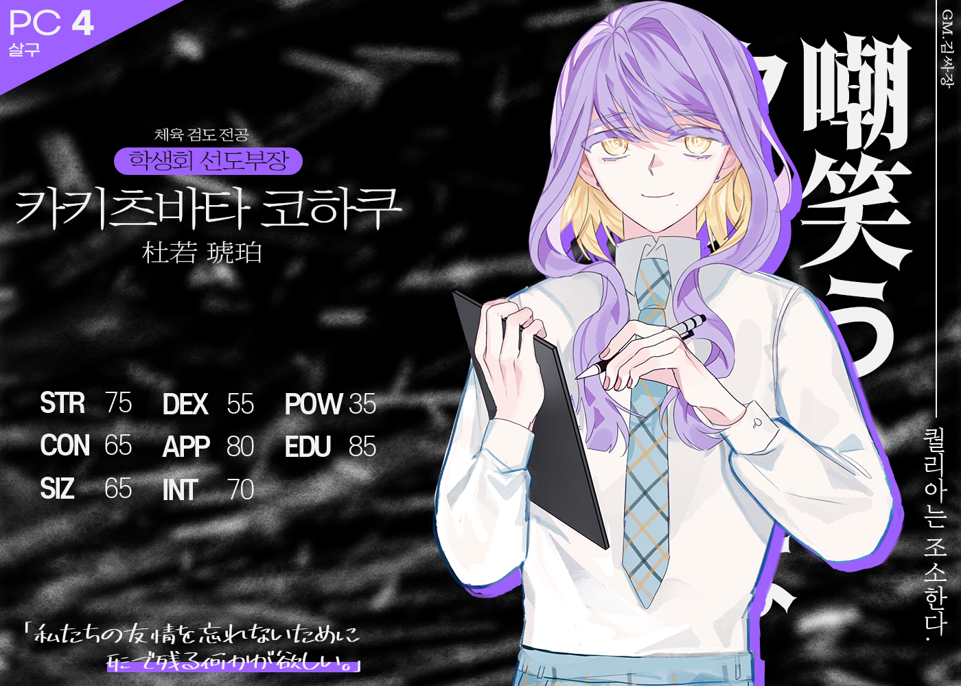 코하쿠는 조금 전까지 우리가 돌아다니고 졸업식에 참가한 기억이 없고, 2026년 4월부터 2029년 3월까지의 기억이 있습니다. 이 3년동안의 기억은 코하쿠에게만 있기 때문에, 탐사자 마음대로 무슨 일이 있었는지 결정해도 됩니다.